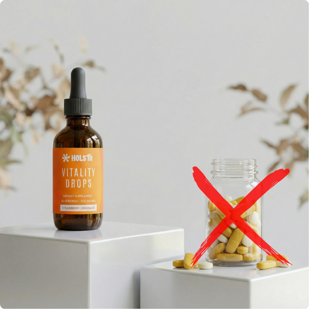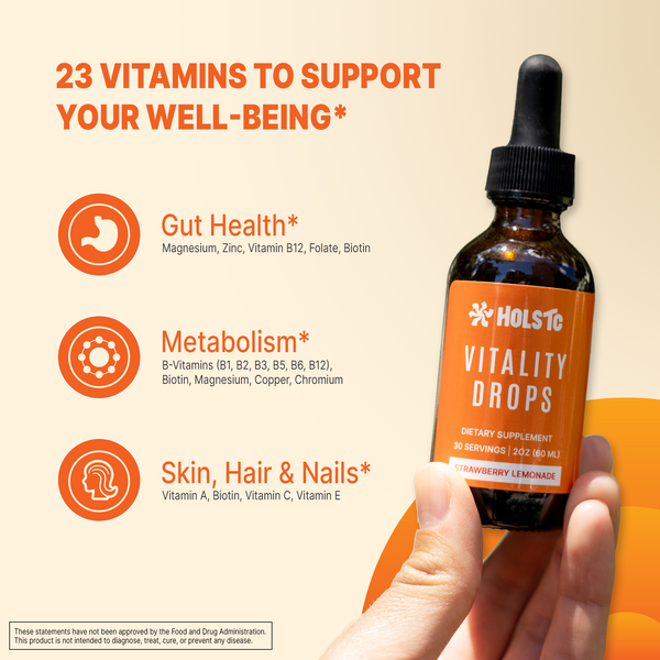 HOLSTC Vitality Drops are a concentrated blend of essential vitamins and minerals designed to fuel your body and support wellness from within. This all-in-one liquid formula delivers broad-spectrum nutritional support in a highly absorbable form—perfect for daily use.